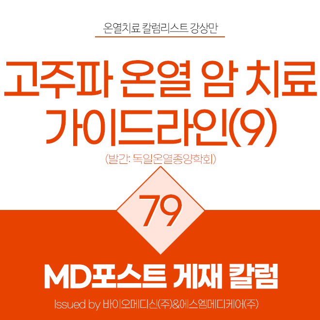 [온열치료칼럼 74편] 고주파온열암치료 가이드라인 (4부) - 독일온열종양학회 자료 발췌 필자는 한국에서 가장 보편적으로 사용하는 국소 용량성 고주파 온열치료(RF 온열치료 또는 RF 고주파 온열치료로도 불린다)가 우리나라에 아직까지도 명확한 가이드라인이 없는 현실에 대한 안타까움을 표하며 그 필요성을 주장한 바 ...
